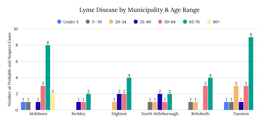 NBC has seen a total of 63 probable and suspect cases of Lyme Disease in the first quarter of 2026. Of the 63 cases, 46% were seen in individuals aged 65-79 years, and another 20.6% were seen in those aged 50-64 years. Community members between the ages of 50-79 years represent two-thirds of all Lyme cases thus far. As the temperature starts to rise, we can expect to see an increase in prevalence of all tickborne illnesses.
